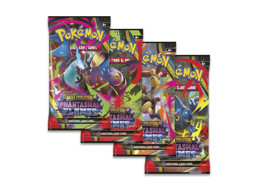 Oficiálně licencovaný produkt Pokémon TCG: Mega Evolution - Phantasmal Flames Booster Pack.