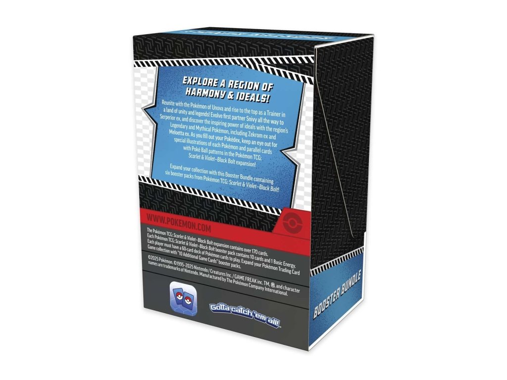Oficiálně licencovaný produkt Pokémon TCG: Scarlet & Violet – Black Bolt Booster Bundle.