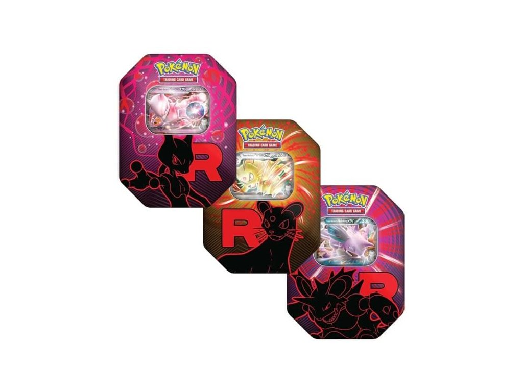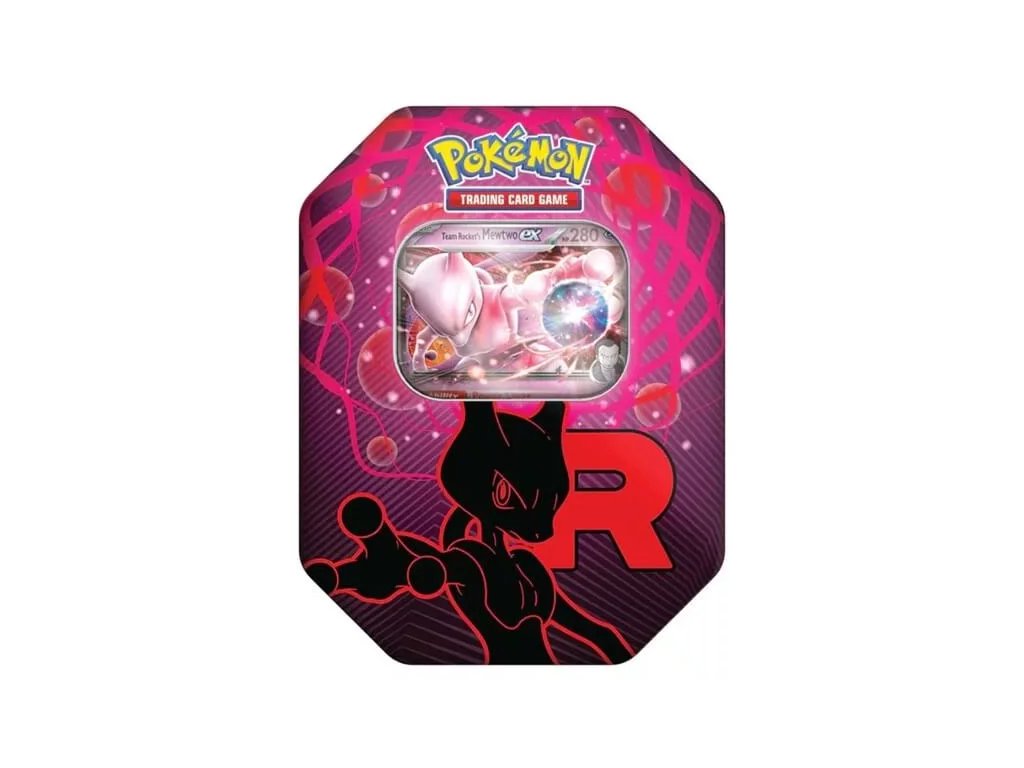 Oficiálně licencovaný produkt Pokémon TCG: Team Rocket Tin.