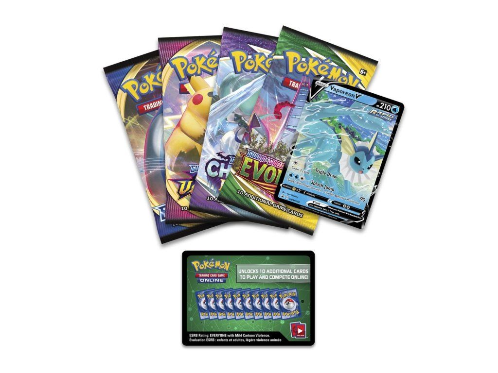Oficiálně licencovaný produkt Pokémon TCG: Vaporeon V Tin.