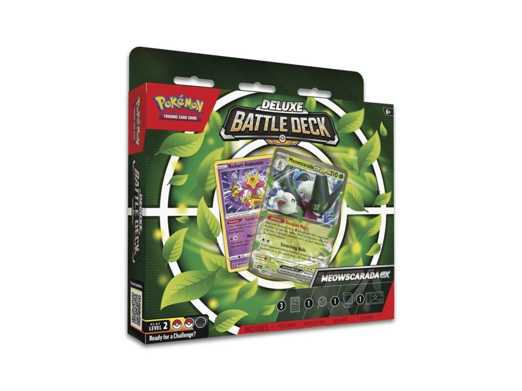 Oficiálně licencovaný produkt Pokémon TCG Meowscarada ex Deluxe Battle Deck.
